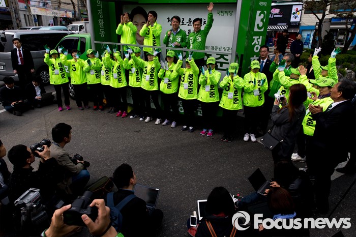 (서울=포커스뉴스) 안철수 국민의당 상임공동대표가 12일 오전 서울 성동구 금장시장 앞에서 서경선 중구성동구갑 후보와 정호준 중구성동구을 후보 지원유세를 하고 있다.