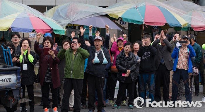(서울=포커스뉴스) 12일 오전 서울 성동구 금장시장 앞에서 안철수 국민의당 상임공동대표와 서경선 중구성동구갑 후보, 정호준 중구성동구을 후보 지지자들이 환호하고 있다.