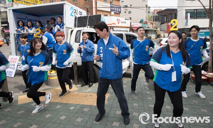 (서울=포커스뉴스) 2016 제20대 국회의원선거를 하루 앞둔 12일 오후 서울 용산구 후암시장 인근에서 진영 서울 용산구 후보가 유권자들에게 지지를 호소하고 있다.