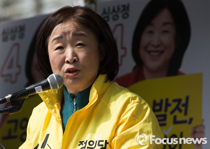(고양=포커스뉴스) 제20대 국회의원 선거를 하루 앞둔 12일 오후 심상정 정의당 고양갑 후보가 경기 고양시 롯데마트 화정점 앞에서 '국민들께 드리는 글'을 발표하고 있다.
