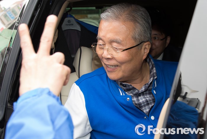 (서울=포커스뉴스) 2016 제20대 국회의원선거를 하루 앞둔 12일 오후 서울 강서구 발산역 인근에서 김종인 더불어민주당 비대위 대표 겸 선대위원장이 금태섭 강서갑 후보, 진성준 강서을 후보, 한정애 강서병 후보와 유세를 마치고 이동하고 있다.