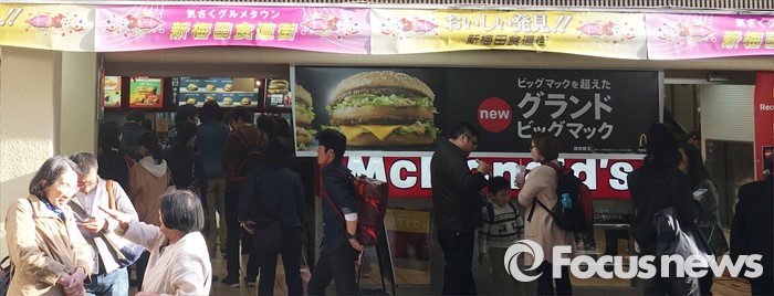 (서울=포커스뉴스) 일본 맥도날드가 광고에서 한국식 인사법을 선보여 논란이 되고 있으며 일본 국내에서는 불매운동 움직임까지 일어나고 있다. 사진은 12일 오후 일본 혼슈 오사카 우메다에 있는 맥도날드의 모습. <사진제공=독자>
