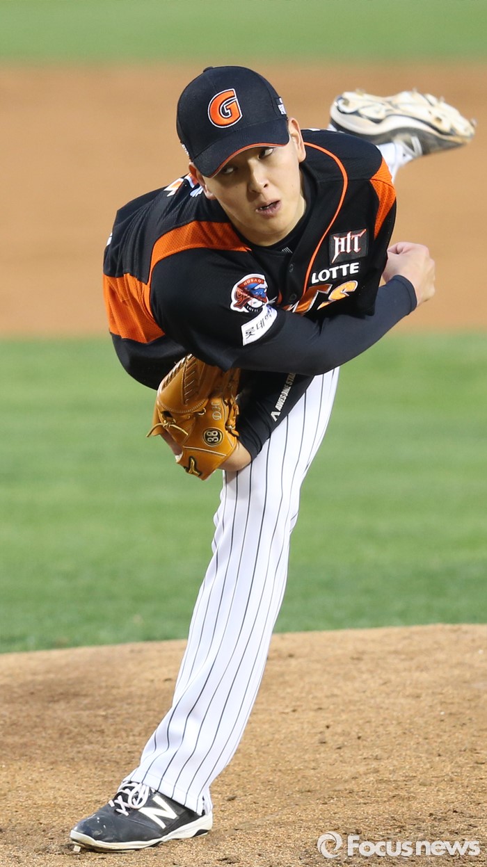 (서울=포커스뉴스) 12일 서울 잠실구장에서 열린 2016 프로야구 롯데-LG 경기에서 1회말 롯데 선발투수 김원중이 투구하고 있다.