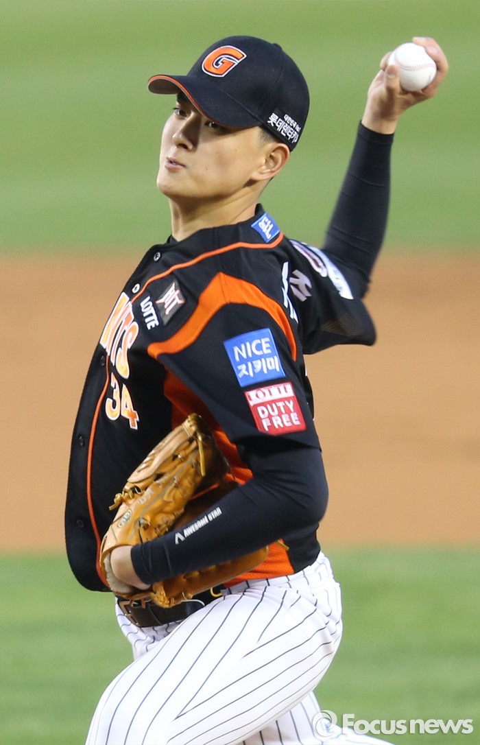 (서울=포커스뉴스) 12일 서울 잠실구장에서 열린 2016 프로야구 롯데-LG 경기에서 1회말 롯데 선발투수 김원중이 투구하고 있다.
