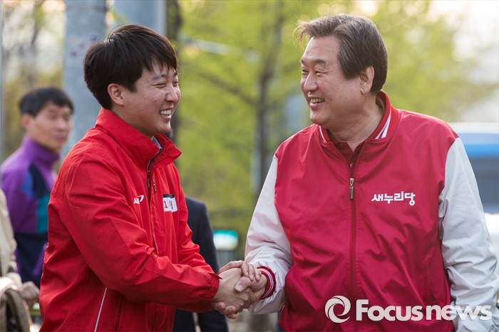 (서울=포커스뉴스) 12일 오후 서울 노원구 GS수퍼마켓 상계점 앞에서 김무성 새누리당 대표가 이준석 새누리당 노원병 후보자 지원 유세를 하고 있다.