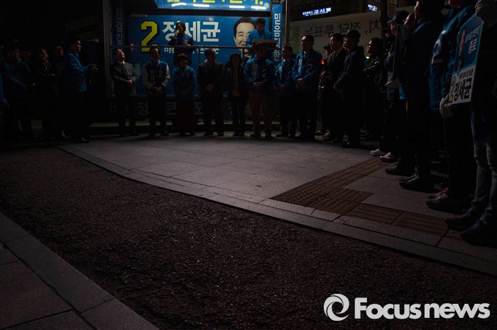 (서울=포커스뉴스) 20대 총선을 하루 앞둔 12일 오후 서울 종로구의 한 아파트 일대에서 정세균 더불어민주당 종로구 후보가 막바지 선거유세를 하고 있다.