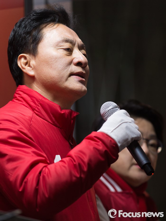 (서울=포커스뉴스) 제20대 국회의원 선거를 하루 앞둔 12일 오후 서울 은평구 증산역 앞에서 정두언 새누리당 서대문을 후보가 로고송을 부르며 지지호소 하고 있다.