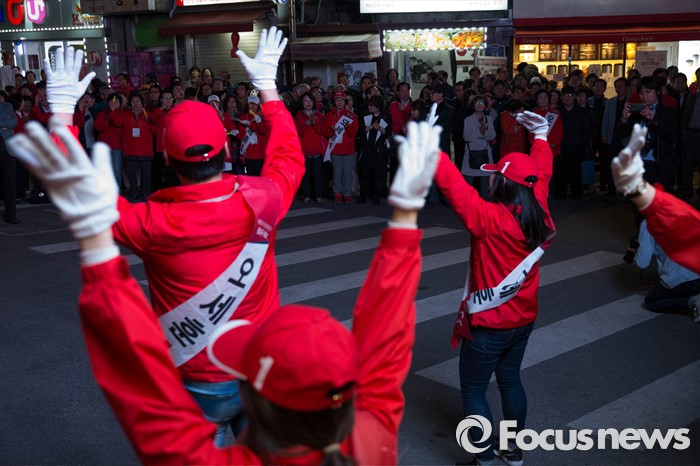 (서울=포커스뉴스) 20대 총선을 하루 앞둔 12일 오후 서울 종로구 경복궁역 일대에서 오세훈 새누리당 종로구 후보측이 막바지 선거유세를 하고 있다.
