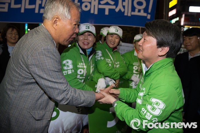 (서울=포커스뉴스) 4.13총선을 하루 앞둔 12일 오후 서울 노원구 롯데백화점 정문 앞에서 안철수 국민의당 상임공동대표가 막바지 선거 유세를 하고 있다.