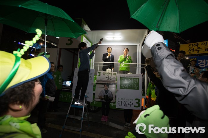 (서울=포커스뉴스) 4.13총선을 하루 앞둔 12일 오후 서울 노원구 롯데백화점 정문 앞에서 안철수 국민의당 상임공동대표가 막바지 선거 유세를 하고 있다.