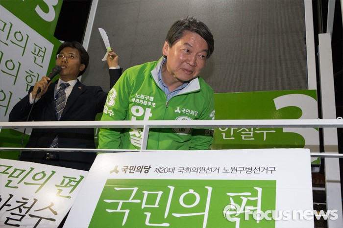 (서울=포커스뉴스) 4.13총선을 하루 앞둔 12일 오후 서울 노원구 롯데백화점 정문 앞에서 안철수 국민의당 상임공동대표가 막바지 선거 유세를 하고 있다.