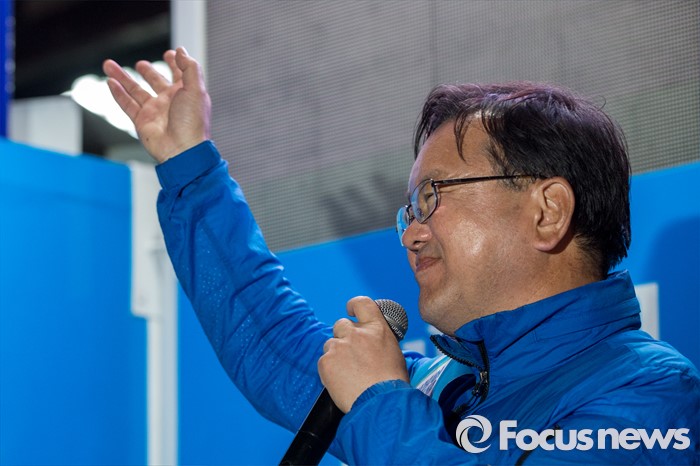 (대구=포커스뉴스) 김부겸 더불어민주당 수성구갑 후보가 12일 오후 대구광역시 수성구 신매네거리에서 유세를하며 유권자들에게 한 표를 호소 하고 있다.