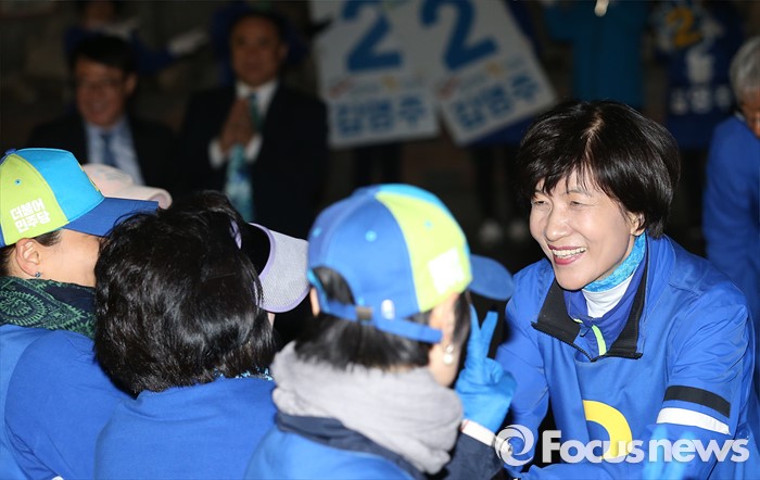 | △ 지지자와 악수하는 김영주 후보 |