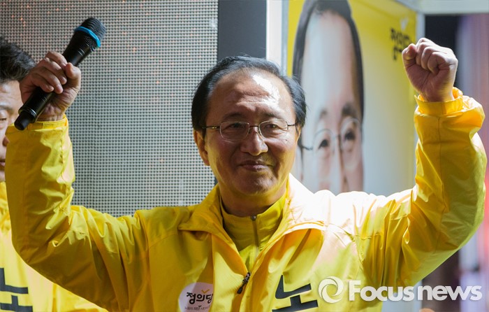 (창원=포커스뉴스) 4.13총선 선거운동 마지막날인 12일 오후 경남 창원시 상남분수광장에서 노회찬 정의당 창원 성산구 후보가 유권자들의 지지를 호소하고 있다.