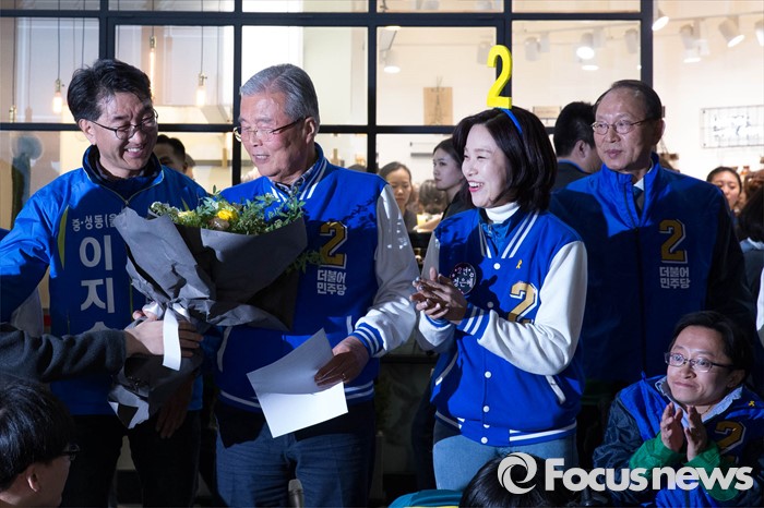 | △ 꽃다발 받은 김종인 대표 |