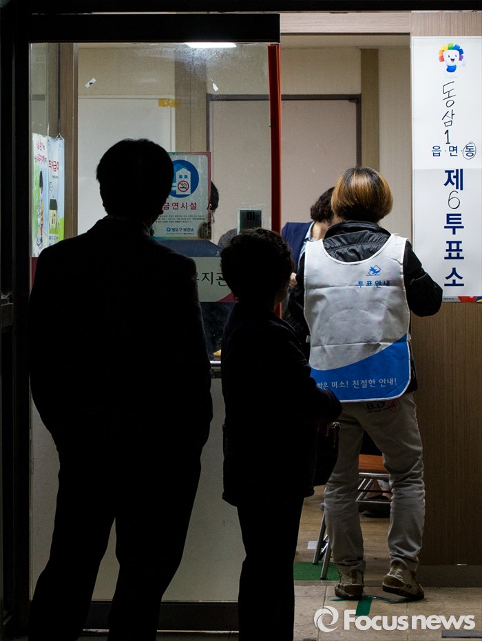 (부산=포커스뉴스) 제20대 국회의원선거일인 13일 오전 부산 영도구 동삼1동 제6투표소에서 유권자들이 투표 시작을 기다리고 있다.