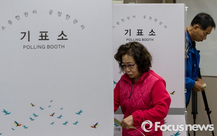 (부산=포커스뉴스) 제20대 국회의원선거일인 13일 오전 부산 영도구 동삼1동 제6투표소에서 유권자들이 투표하고 있다.