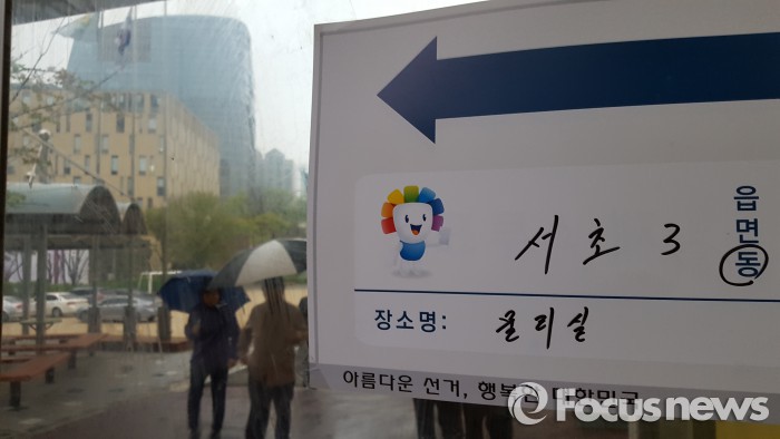 서울 서초구 서초3동 제4투표소와 제5투표소가 마련된 서초고등학교에는 비가 오는 궂은 날씨 탓인지 투표 시작 전부터 기다리는 유권자는 그리 많지 않았다.