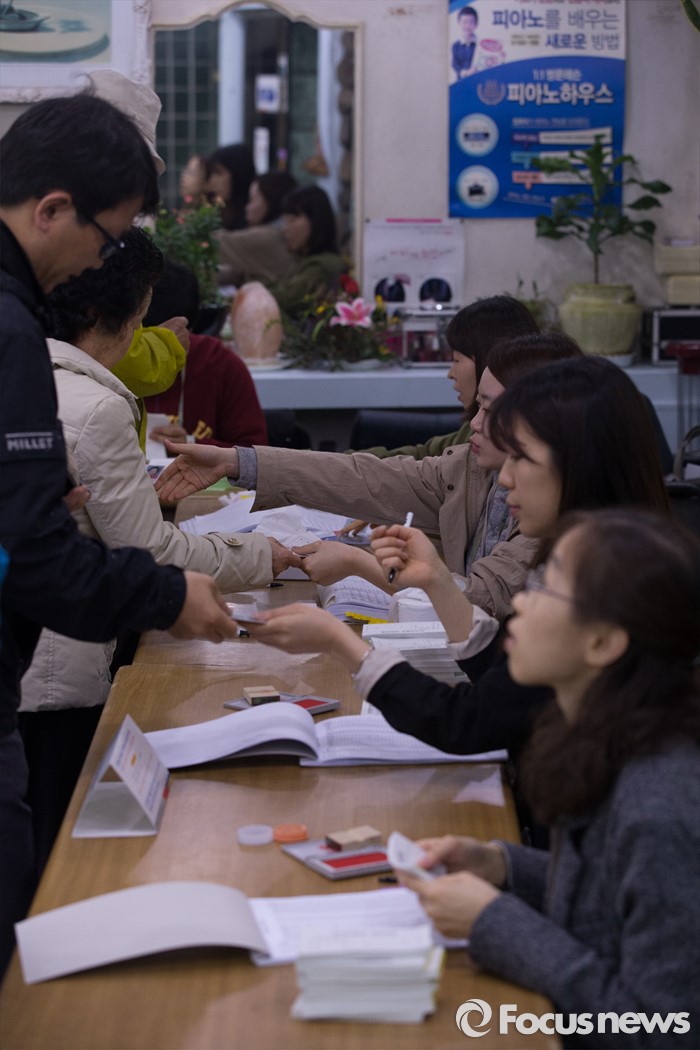(서울=포커스뉴스) 제20대 국회의원선거일인 13일 오전 서울 서대문구 뉴헤어미용실에 위치한 홍은제2동 제2투표소에서 유권자들이 투표하고 있다.