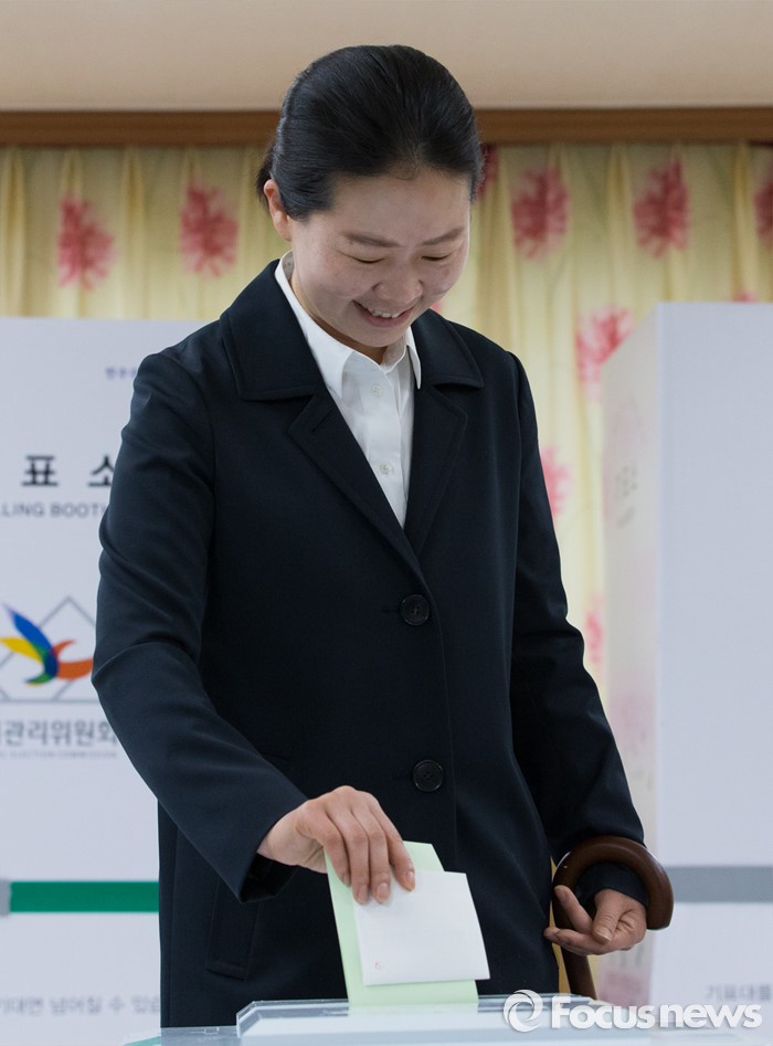 (광주=포커스뉴스) 제20대 국회의원 선거일인 13일 오전 광주 광산구 첨단라인1차아파트 경로당에서 권은희 국민의당 광주 광산구을 후보가 투표를 하고 있다.