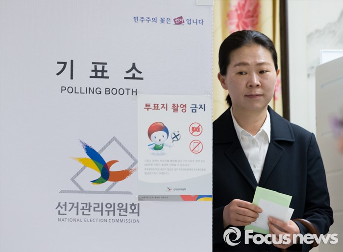(광주=포커스뉴스) 제20대 국회의원 선거일인 13일 오전 광주 광산구 첨단라인1차아파트 경로당에서 권은희 국민의당 광주 광산구을 후보가 투표를 하고 있다.