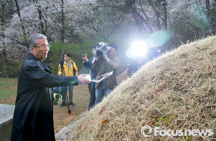 (서울=포커스뉴스) 20대 총선 투표일인 13일 오전 김종인 더불어민주당 비대위 대표 겸 선대위원장이 서울 강북구 수유동에 위치한 자신의 조부인 가인 김병로 선생 묘소를 찾아 성묘를 하고 있다.