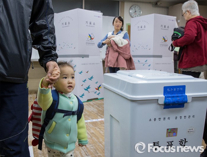 (부산=포커스뉴스) 제20대 국회의원선거일인 13일 오전 부산 영도구 동삼1동 제6투표소에서 한 어린이가 투표함을 바라보고 있다.