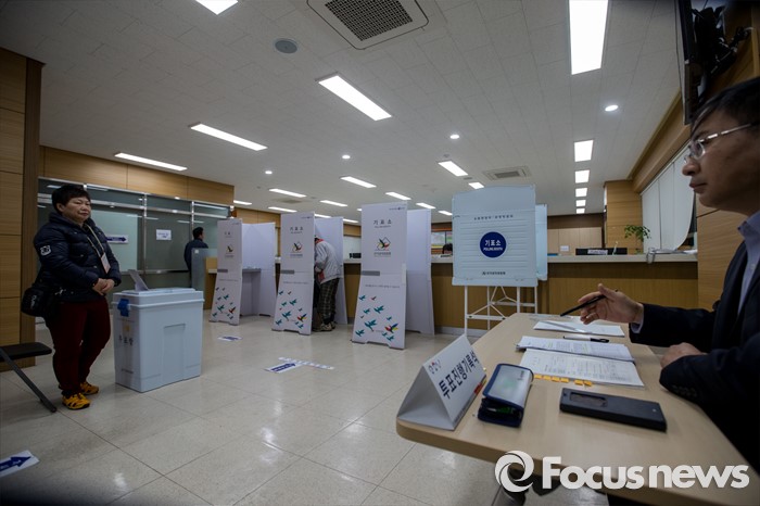 (대구=포커스뉴스) 제20대 국회의원선거날인 13일 오전 대구 수성구 만촌주민센터에 마련된 투표소가 한산한 모습을 보이고 있다.