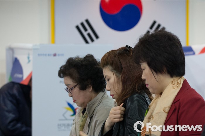 (서울=포커스뉴스) 제20대 국회의원선거일인 13일 오전 서울 강서구 화곡제8동 제5투표소에서 유권자들이 투표를 하기위해 본인확인절차를 밟고 있다.