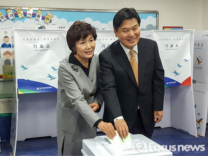 (대구=포커스뉴스) 제20대 국회의원선거날인 13일 오전 대구 북구 운암초등학교에 마련된 투표소에서 홍의락 무소속 대구 북구을 후보가 투표를 하고 있다.
