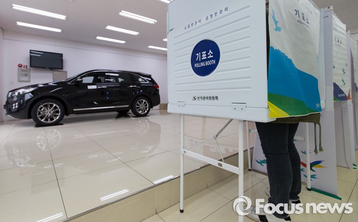 (서울=포커스뉴스) 제20대 국회의원선거일인 13일 오전 서울 광진구 중곡 제1동 제2투표소에서 유권자들이 투표를 하고 있다.