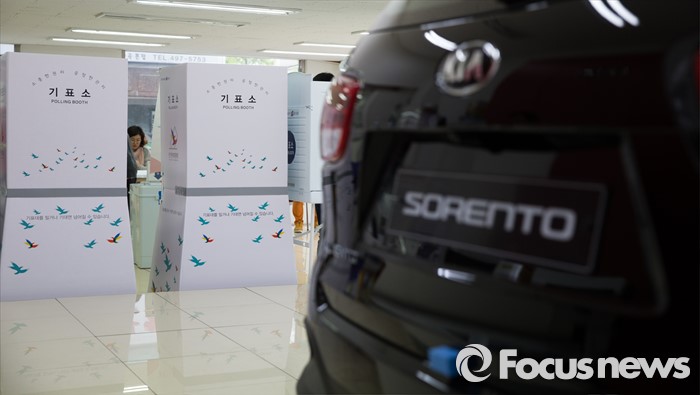 (서울=포커스뉴스) 제20대 국회의원선거일인 13일 오전 서울 광진구 기아자동차 중곡대리점에 투표소가 마련되어 있다.