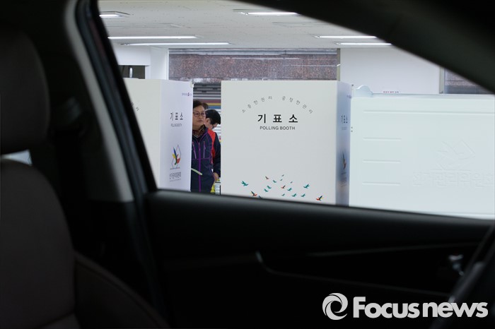 (서울=포커스뉴스) 제20대 국회의원선거일인 13일 오전 서울 광진구 중곡 제1동 제2투표소에서 유권자들이 투표를 하고 있다.
