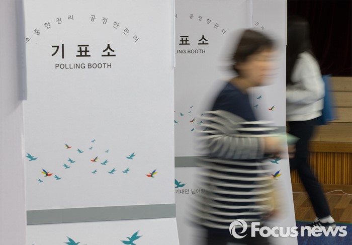 (서울=포커스뉴스) 2016 제20대 국회의원선거날인 13일 오후 서울 서초구 서이초등학교에 마련된 투표소에서 유권자들이 투표를 하고 있다.