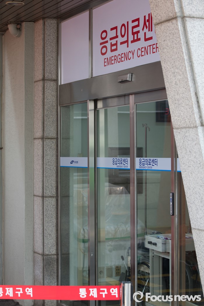 (서울=포커스뉴스) 13일 오후 서울 종로구 강북삼성병원 응급실 앞 출입이 통제되고 있다. 최근 한국에 입국한 아랍에미리트(UAE) 국적의 메르스 의심환자가 강북삼성병원 응급실을 방문해 메르스 의심 진단을 받은 것으로 확인됐다.