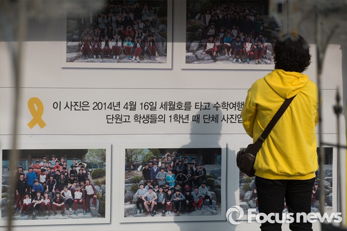 (서울=포커스뉴스) 제20대 국회의원선거날인 13일 오후 서울 종로구 광화문 광장에 위치한 세월호 농성장 글귀를 한 시민이 바라보고 있다.