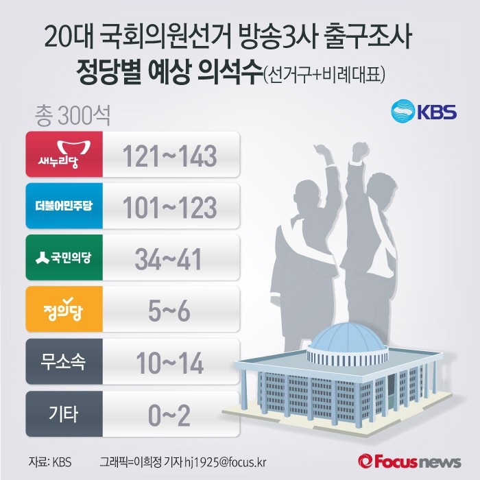 | △ [그래픽] 4·13 출구조사 방송3사 정당별 예상 의석수(KBS발표) |