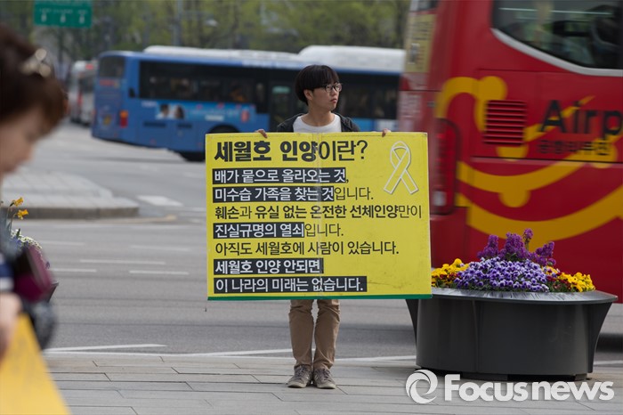 (서울=포커스뉴스) 제20대 국회의원선거날인 13일 오후 서울 종로구 광화문 광장에서 한 시민이 피켓을 들고 있다.