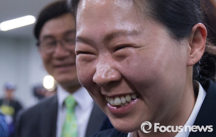 (광주=포커스뉴스) 제20대 국회의원 선거일인 13일 오후 광주 서구 국민의당 광주광역시당에서 권은희 광주 광산구을 후보가 출구조사 결과를 보고 지지자들과 인사를 나누고 있다.