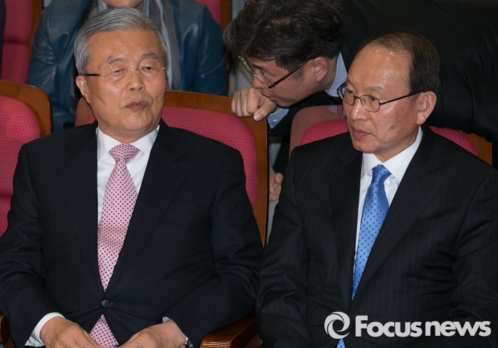 (서울=포커스뉴스) 20대 총선 투표일인 13일 오후 서울 여의도 국회 의원회관 대회의실에 마련된 더불어민주당 개표상황실에서 김종인(왼쪽) 비대위 대표 겸 선대위원장이 당직자와 대화하고 있다. 오른쪽은 최운열 국민경제상황실장.