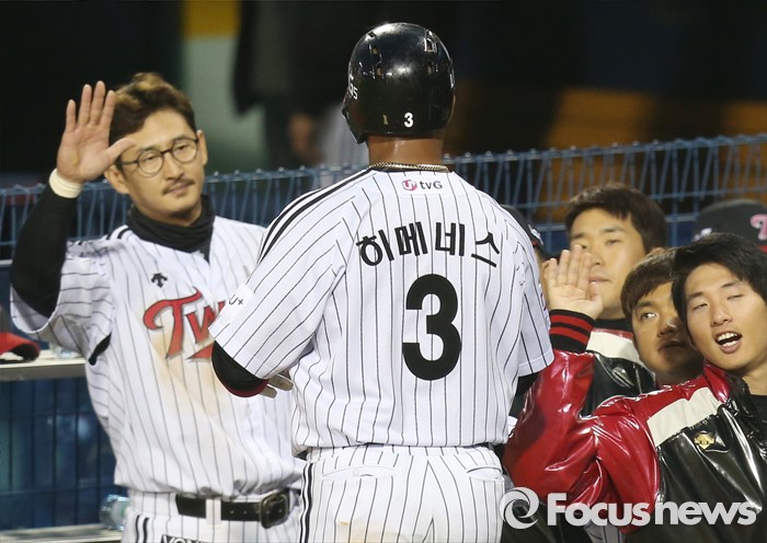 (서울=포커스뉴스) 13일 서울 잠실구장에서 열린 2016 프로야구 롯데-LG 경기 2회말 롯데 투수코치 주형광이 마운드에 올라가 린드블럼을 안정시키고 있다.