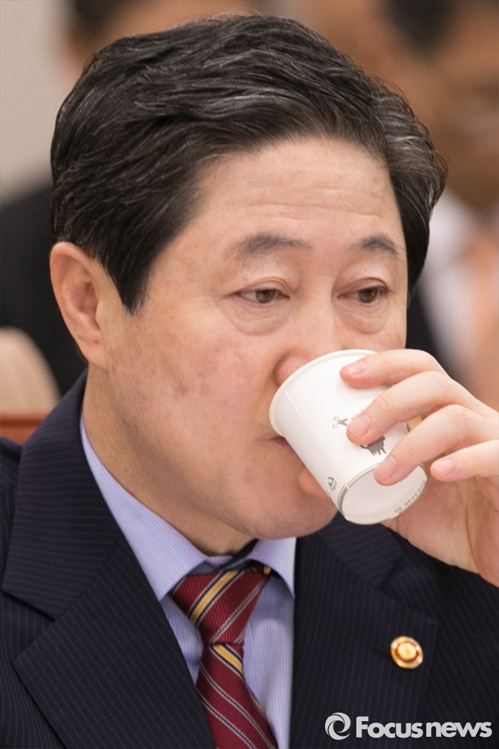 | △ 목 축이는 유기준 장관 |