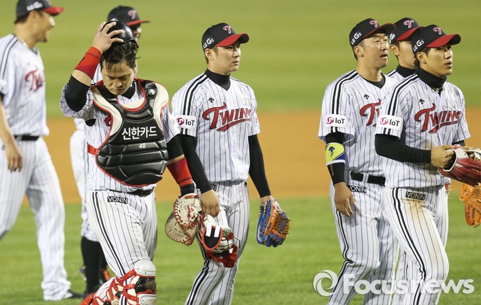 (서울=포커스뉴스) 13일 서울 잠실구장에서 열린 2016 프로야구 롯데-LG 경기에서 2연승을 한 LG 선수들이 덕아웃으로 들어가고 있다.