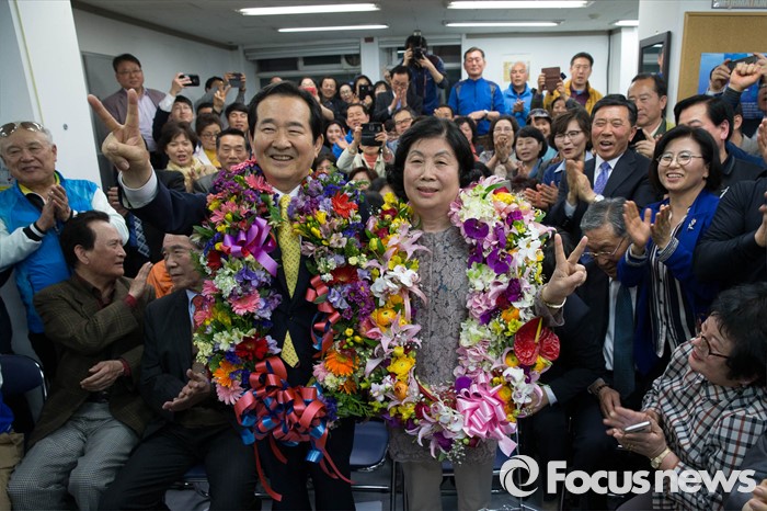 | △ 당선 확실, 정세균 후보 부인과 함께 |