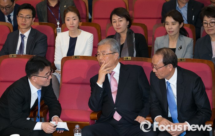 (서울=포커스뉴스) 20대 총선 투표일인 13일 오후 서울 여의도 국회 의원회관 대회의실에 마련된 더불어민주당 개표상황실에서 김종인(가운데) 비대위 대표 겸 선대위원장, 최운열(오른쪽) 국민경제상황실장, 이재경 선대위 대변인이 대화하고 있다.