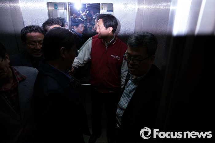 (서울=포커스뉴스) 제20대 국회의원선거일인 13일 오후 종로구에서 정세균 더불어민주당 후보에게 패배한 오세훈 후보가 지지자들과 인사를 하며 선거사무소를 빠져나가고 있다.