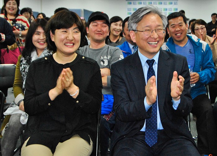 | △ 기뻐하는 더민주 권칠승 |
