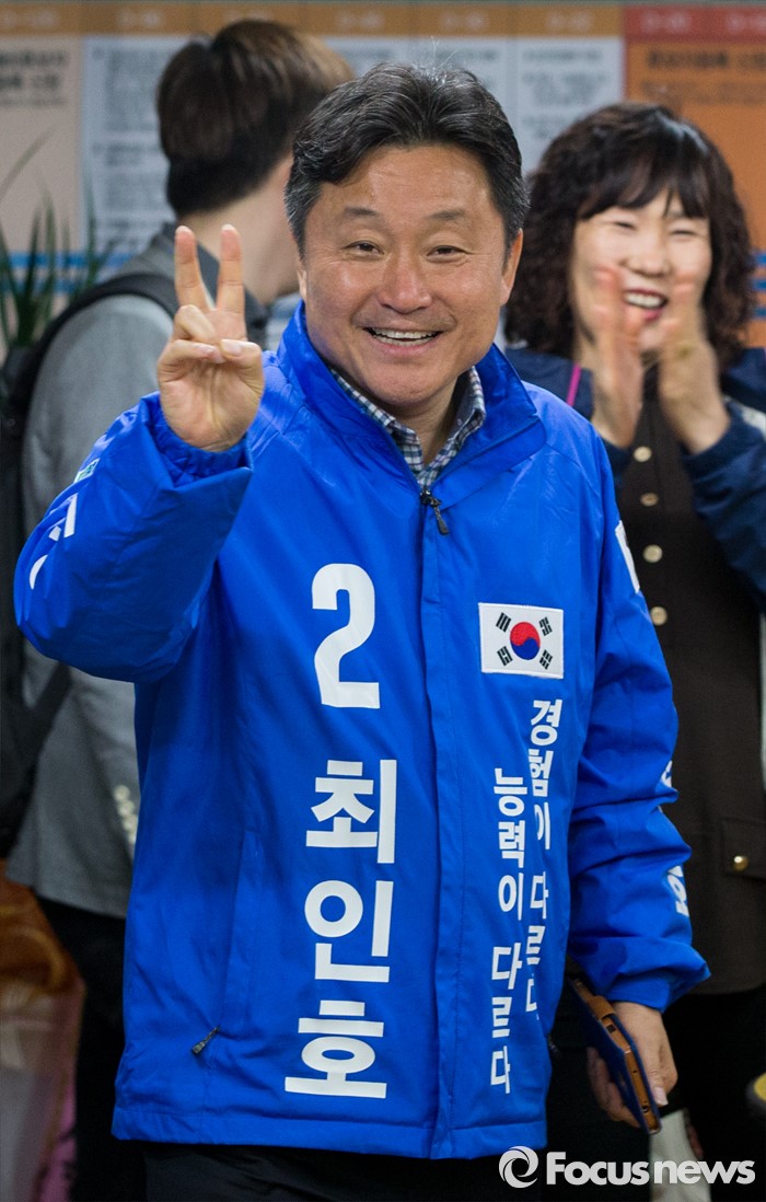 (부산=포커스뉴스) 최인호 더불어민주당 부산 사하구갑 후보가 13일 오후 부산 사하구 선거사무소에서 개표방송 결과 시청 도중 앞서고 있다는 소식에 지지자들과 기쁨을 나누고 있다.