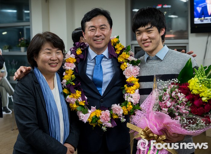 | △ 가족과 기쁨 나누는 김영춘 |