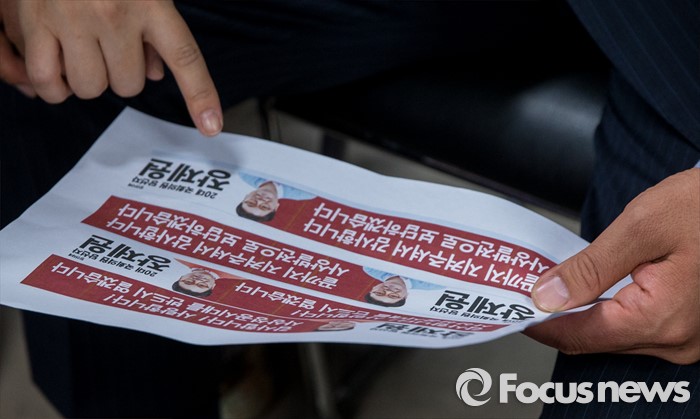 (부산=포커스뉴스) 제20대 국회의원선거에서 당선이 확실시된 장제원 무소속 부산 사상구 후보가 14일 오전 부산 사상구 선거사무소에서 당선사례 현수막 견본을 고르고 있다.